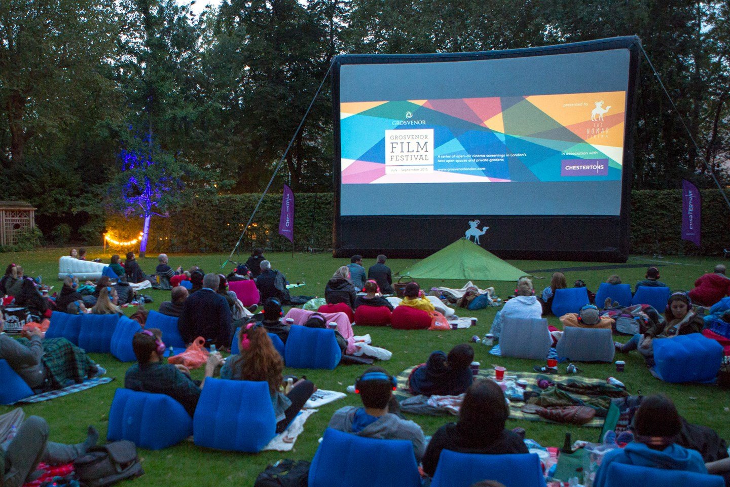 Enjoy cinema under the open sky with cozy blankets and fresh popcorn.